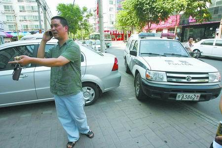 岳先生的车被警车堵住