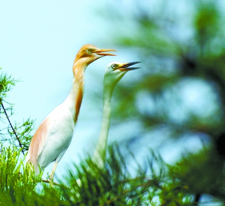 “西塞山前白鹭飞,桃花流水鳜鱼肥。”在端阳粽香、惠风和畅的时节,记者来到素有“北国江南”之称的信阳。在固始县胡族铺镇一处湿地自然保护区,充满诗情画意的景象真切呈现在镜头前,使人恍如走入了唐诗般的境界:数不清的白鹭飞翔嬉戏,母鸟雏鹭的鸣叫温馨感人……生命与激情的萌动瞬间充盈记者心胸。